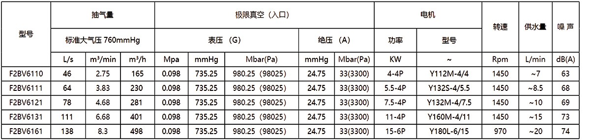 2.上列性能基于進氣溫度20℃,進水溫度15℃,排氣壓力1013hpa的條件,被吸入氣體為飽和空氣。(飽和空氣是指在對應吸入狀態下,其相對濕度為100%的濕空氣。)